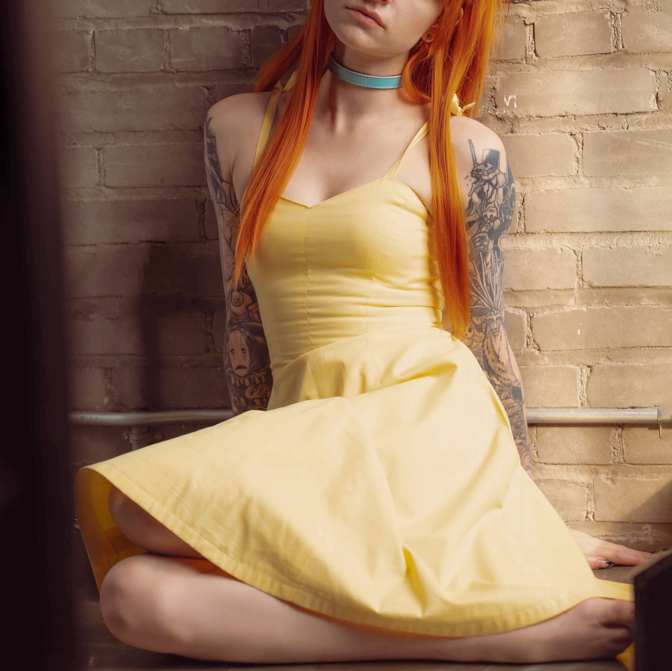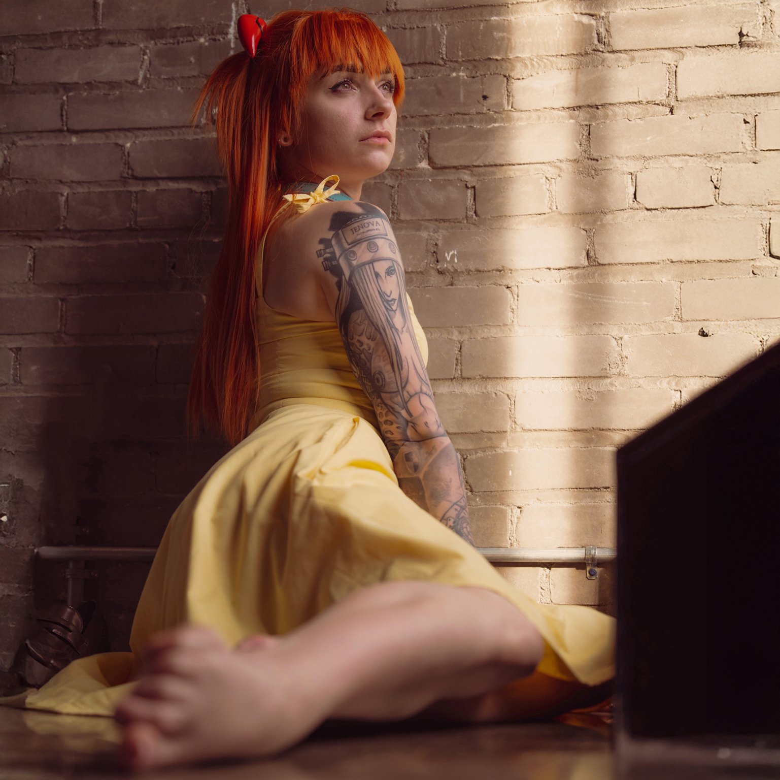 I’ve done a couple other looks for Asuka — a printed catsuit, of course, which I didn’t make, but I did make her yellow dress! (And yes, of course it has pockets.) The fabric is non-stretch, but tailored very carefully less than a week before the photos were scheduled.